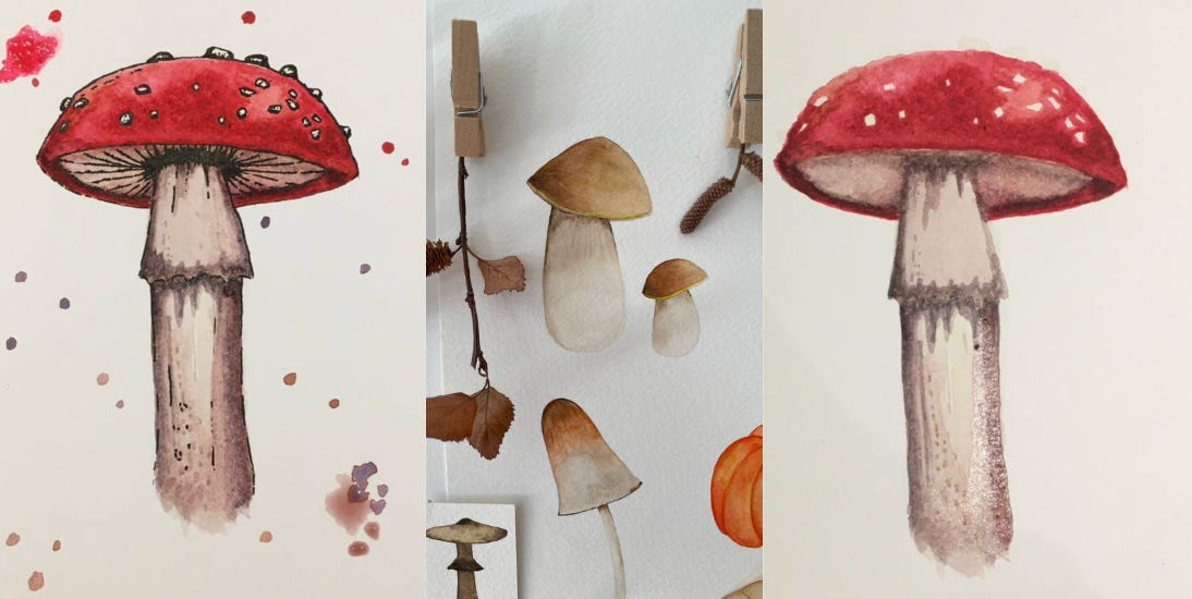 My little sister, Ally, has a thing about mushrooms. She lives in a fairytale cottage on the edge of National Trust woodland, photographs fungi on her walks - enough to warrant a private Instagram dedicated entirely to the subject - paints them, felts them, and has filled every available surface in her kitchen with field guides and monographs. Every Christmas I have to find something mushroom-related she doesn't already own. Mushroom bed socks. A mushroom crocheting kit. A mushroom embroidered jumper. (Etsy has anticipated people like Ally entirely. The range is staggering.)